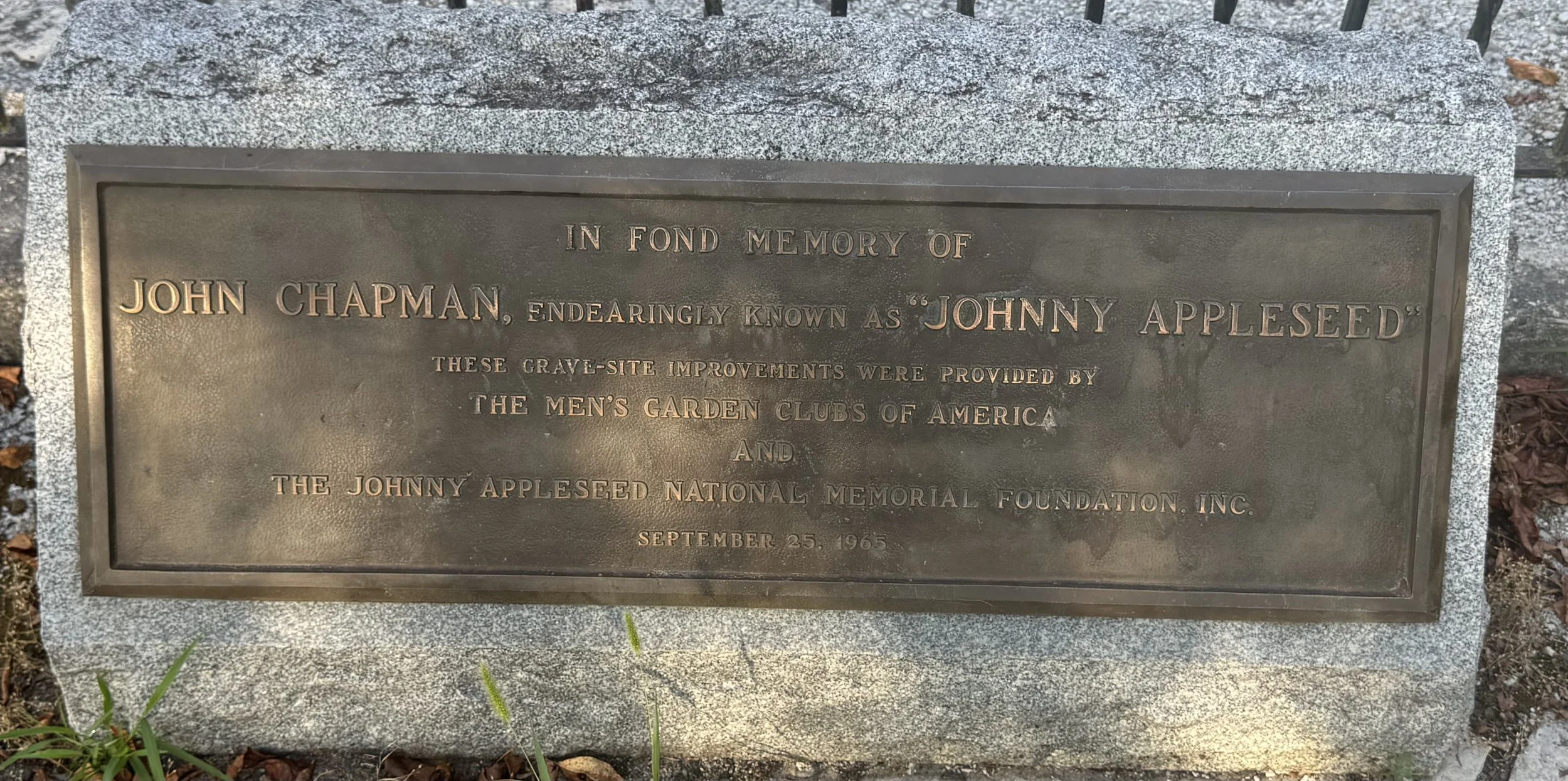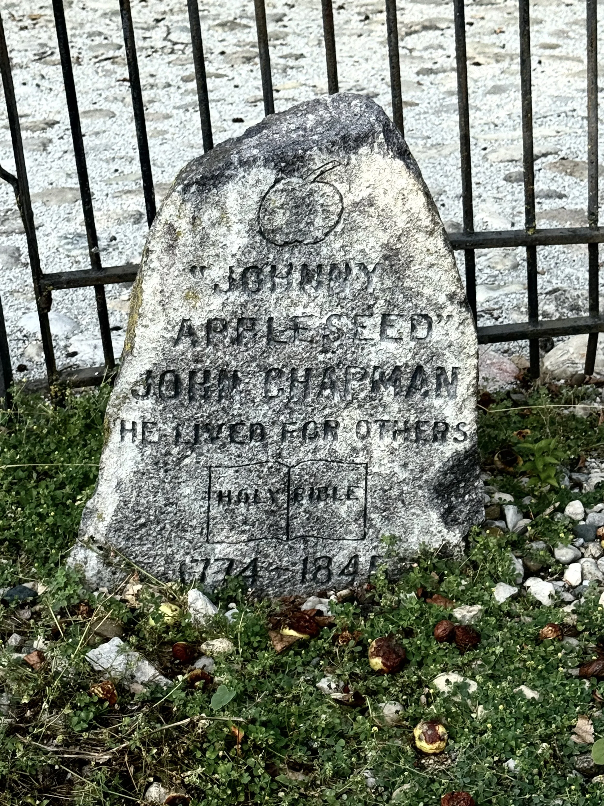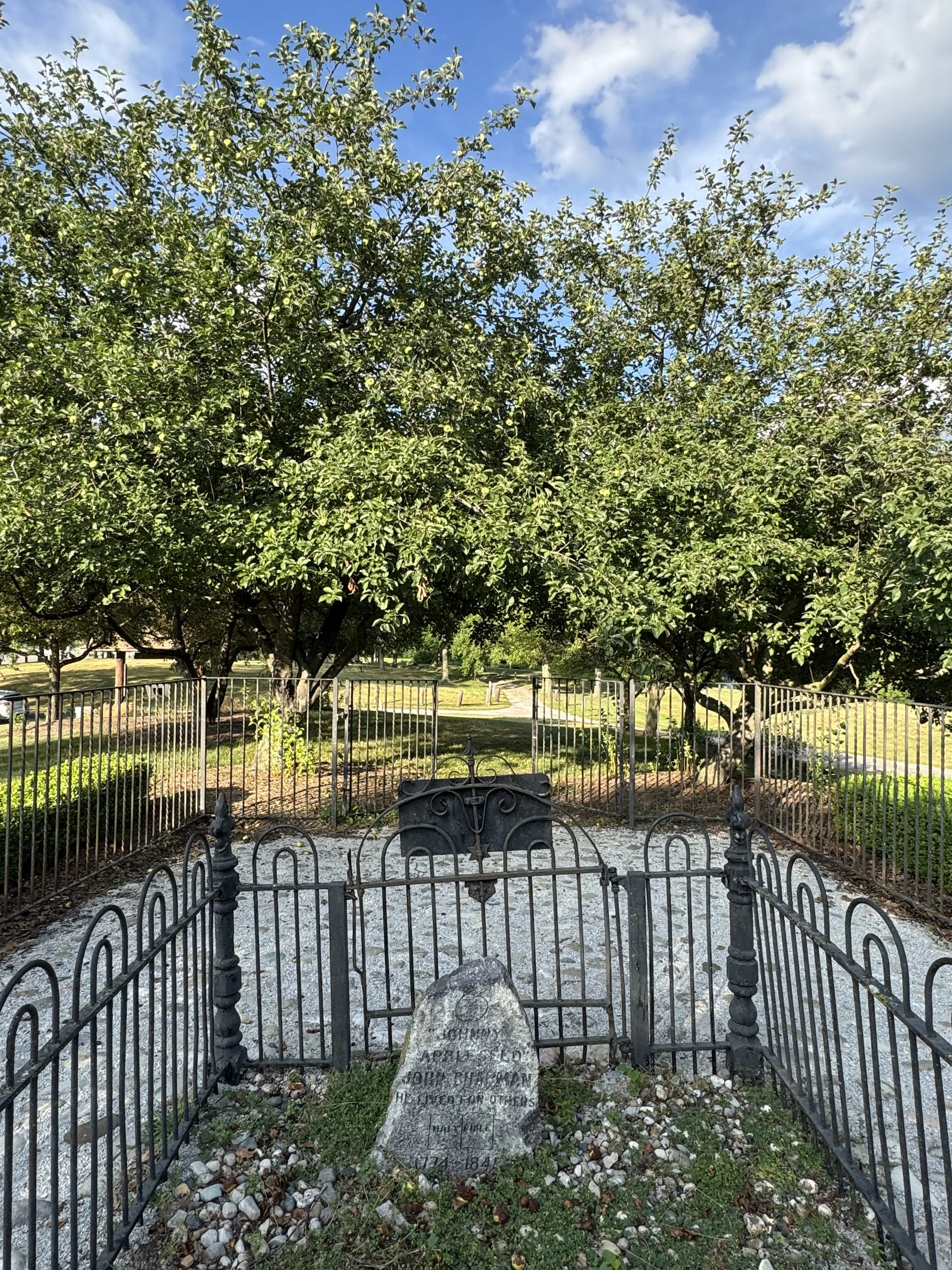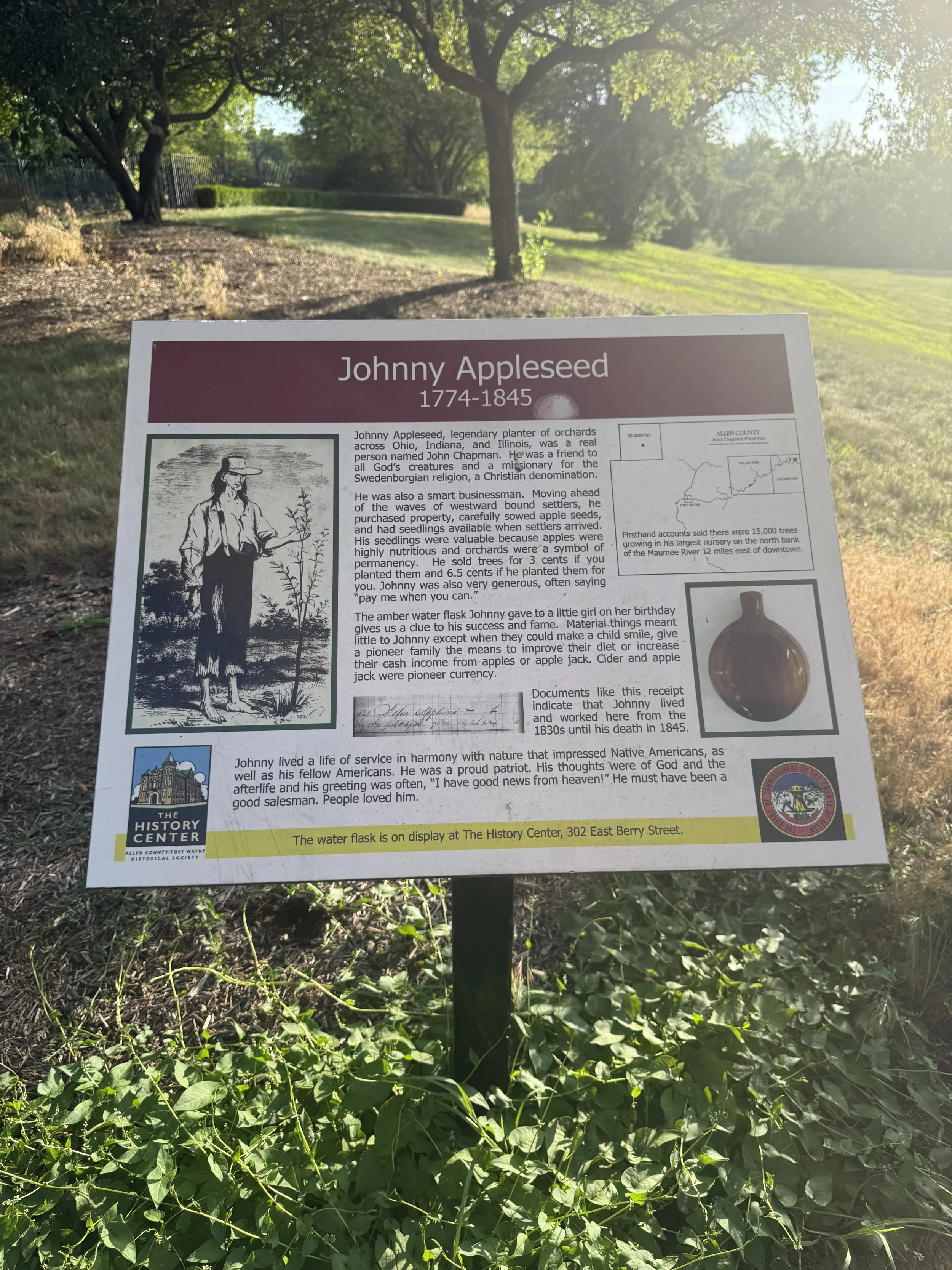 In Fort Wayne, Indiana, we stayed at the Johnny Appleseed Campground, next to the grave of the beloved John Chapman, aka “Johnny Appleseed” (1774-1845).